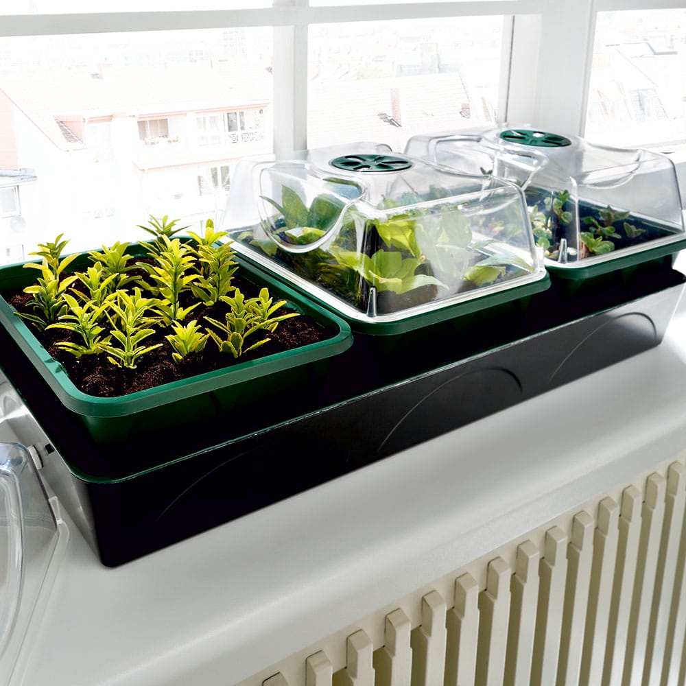 Je nach Pflanze und Wachstumsstadium könnt ihr mit den Deckeln mit variabler Belüftung ein perfektes Anzuchtklima schaffen. Die eingebaute Heizmatte sorgt für eine optimale Keimtemperatur und das warm-feuchtes Klima. Eure Pflänzchen werden es lieben!