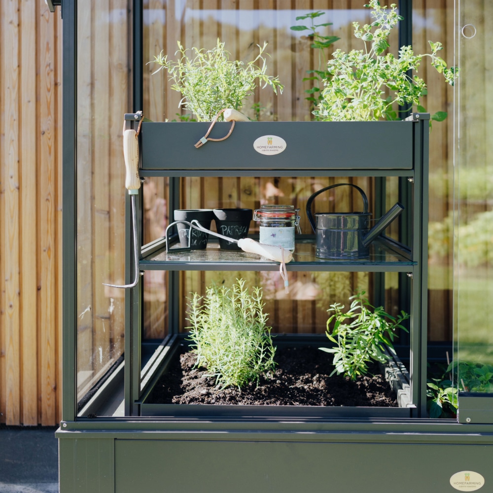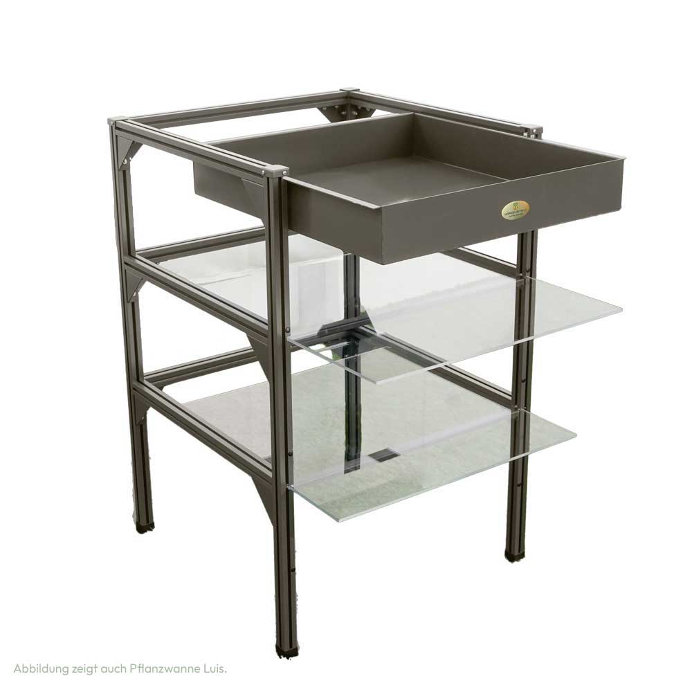 Die drei Glasböden lassen Licht an die Kulturen in den unteren Etagen und sind stabil genug, um Töpfe und Pflanzgefäße sicher aufstellen zu können.
