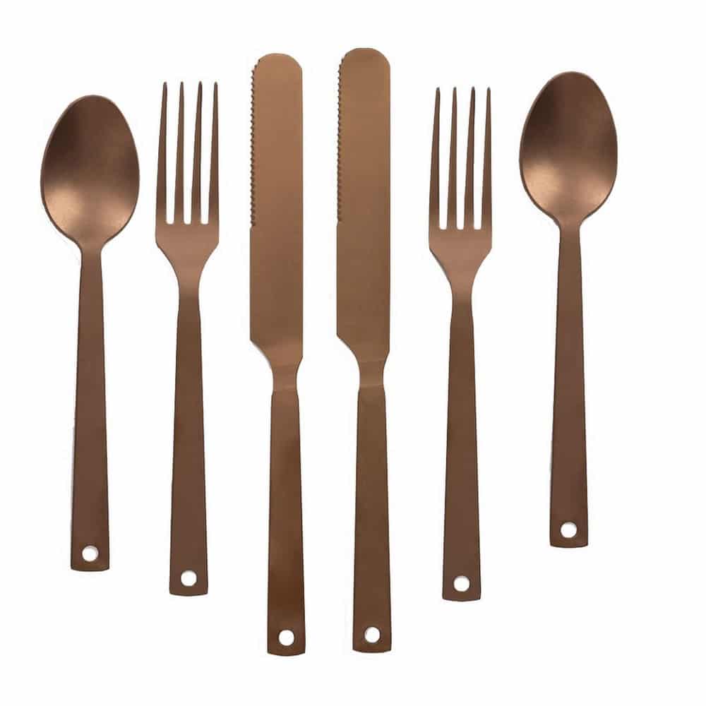 Minimalistisch, zweckmäßig und modern – das Besteck-Set von Barebones bringt Stil auf deinen Tisch. Mit seiner Kupferoptik im „Distressed“-Look setzt es einen außergewöhnlichen Akzent, der deinem Esstisch Charme und Charakter verleiht. Die dunkle, dezente Oberfläche passt perfekt zu den Emaille-Geschirrteilen und verleiht jedem gedeckten Tisch ein harmonisches und zugleich individuelles Aussehen.