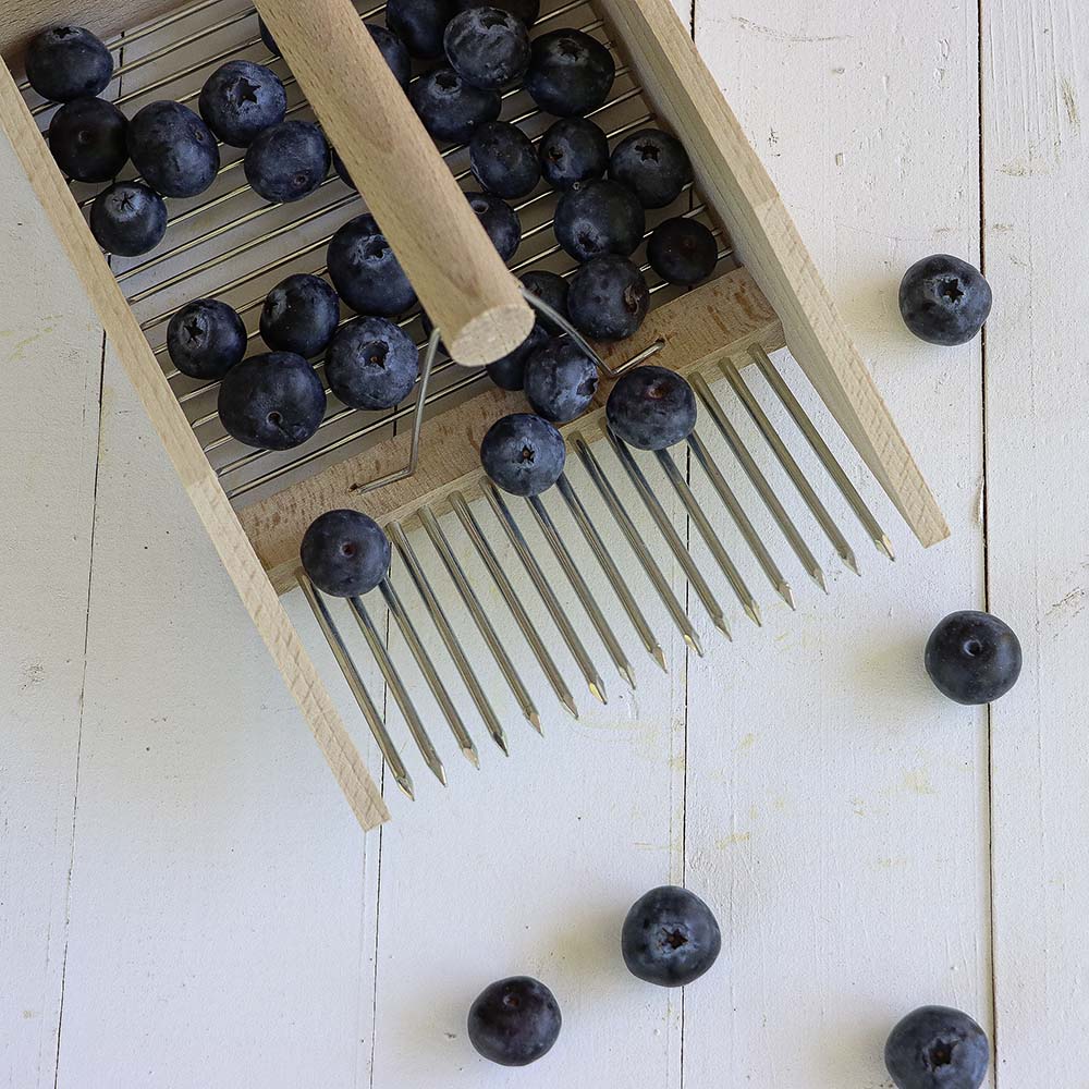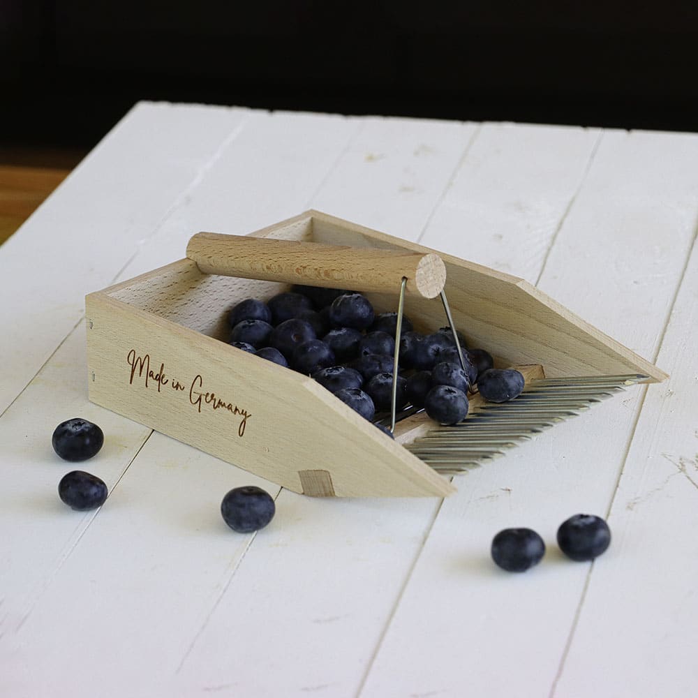 Mit diesem plastikfreien Beerensammler aus Buchenholz, kannst du Beeren schnell und einfach vom Strauch „kämmen“. So einfach war die Beerenernte noch nie. Zeitsparend und effektiv.