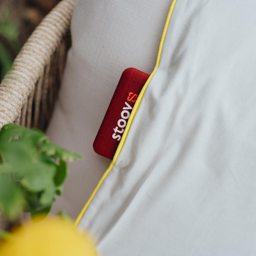 Hinweis: Die Kissen und Decken sind für die In- und Outdoor-Nutzung konzipiert. Der Stoff und die Technik sind nicht wetterbeständig, nehmt sie am Abend mit rein.