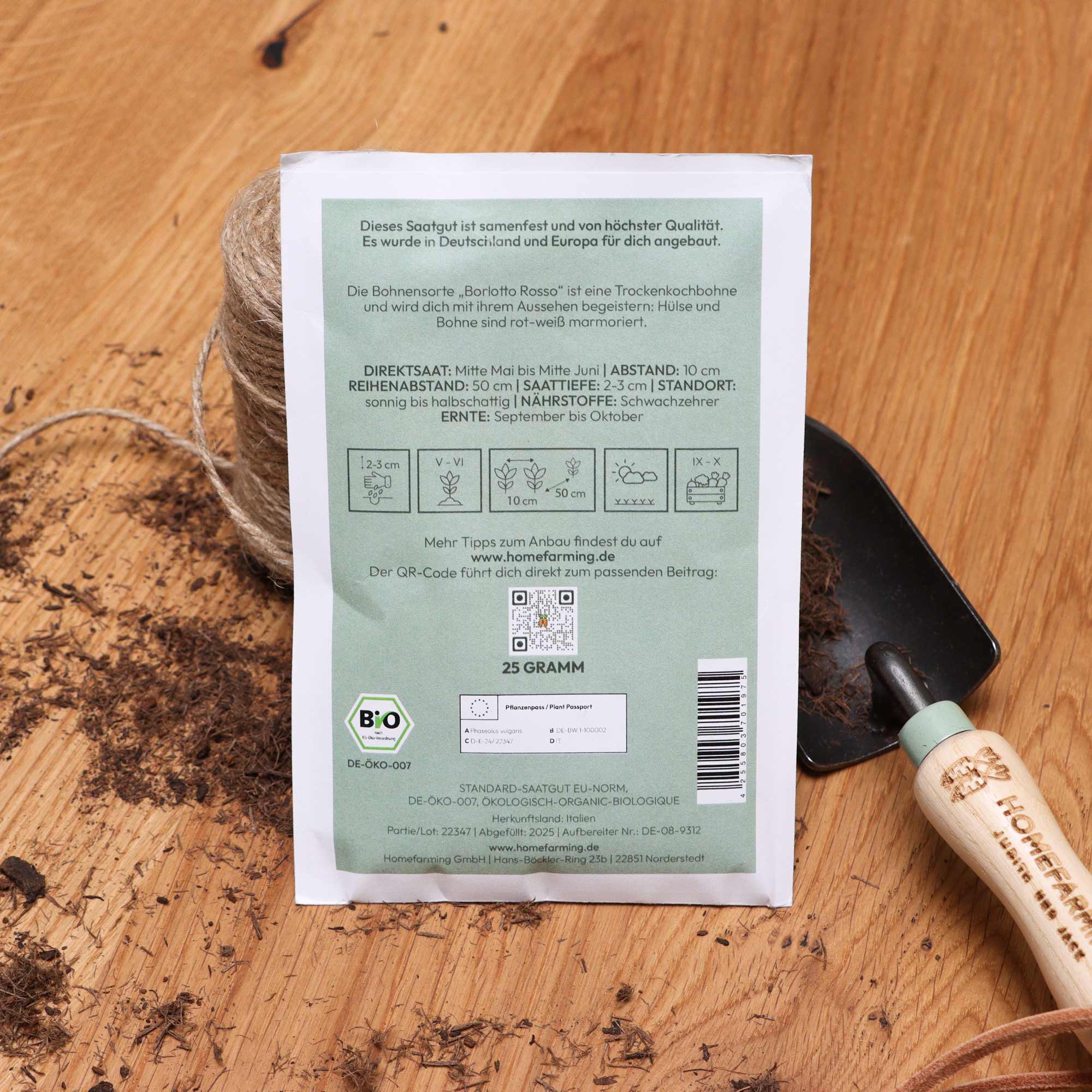 Das Bio-Saatgut stammt aus regionalem Anbau in Deutschland und Europa, wird von einem Familienunternehmen in Süddeutschland abgefüllt, ist samenfest und BIO-zertifiziert. Du bekommst also geprüfte Qualität. Auf der Saatguttüte findest du eine Kurz-Anleitung zum Säen, Pflanzen und Ernten und Angaben zum idealen Standort. Sehr ausführliche Informationen haben wir in unseren Steckbriefen hinterlegt, die du bequem über den QR-Code auf der Tüte abrufen kannst.