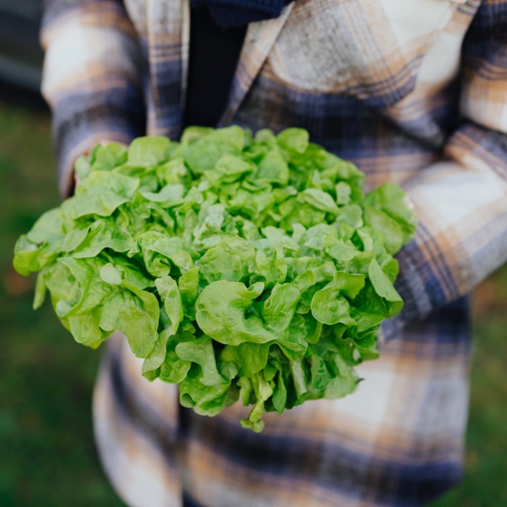Der Eichblattsalat macht seinem Namen alle Ehre, denn die Blätter sehen wirklich aus wie die einer Eiche. Du kannst entweder einzelne Blätter von der Pflanze abpflücken oder du erntest den ganzen Kopf.