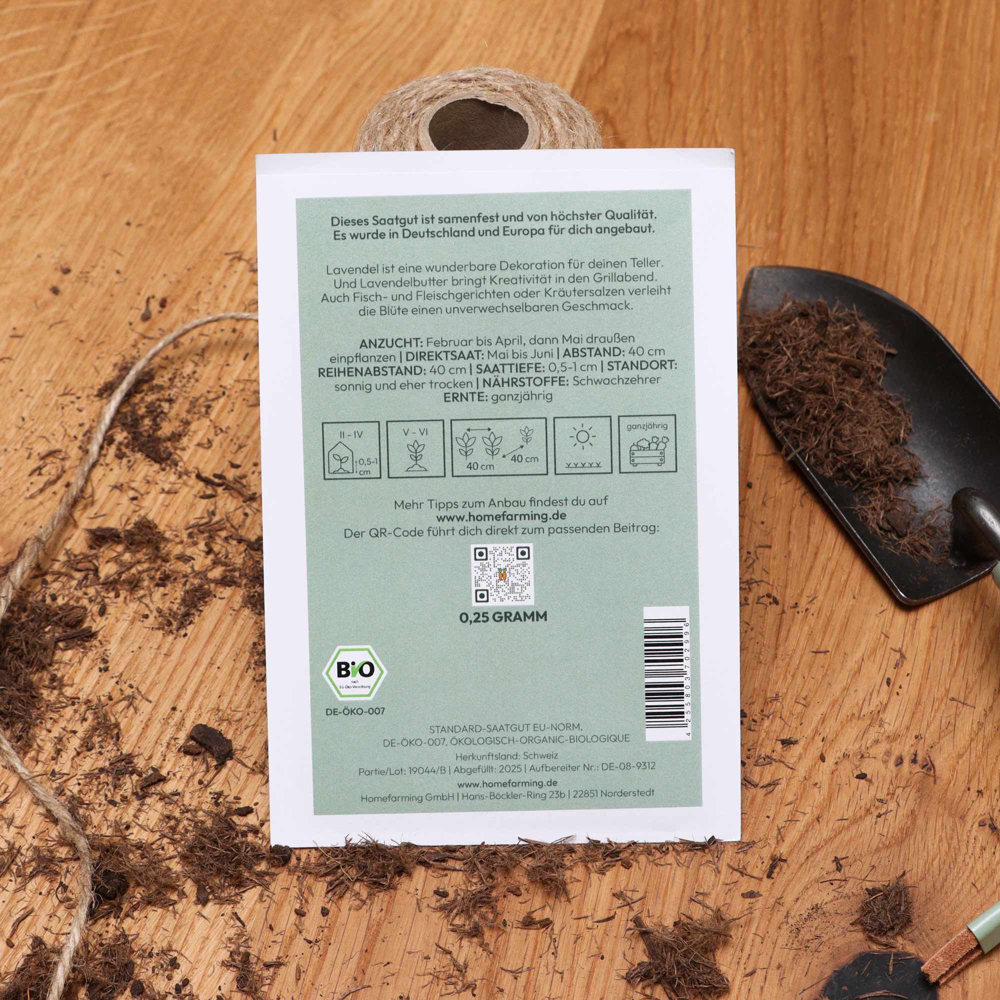 Das Bio-Saatgut stammt aus regionalem Anbau in Deutschland und Europa, wird von einem Familienunternehmen in Süddeutschland abgefüllt, ist samenfest und BIO-zertifiziert. Du bekommst also geprüfte Qualität. Auf der Saatguttüte findest du eine Kurz-Anleitung zum Säen, Pflanzen und Ernten und Angaben zum idealen Standort. Sehr ausführliche Informationen haben wir in unseren Steckbriefen hinterlegt, die du bequem über den QR-Code auf der Tüte abrufen kannst.
