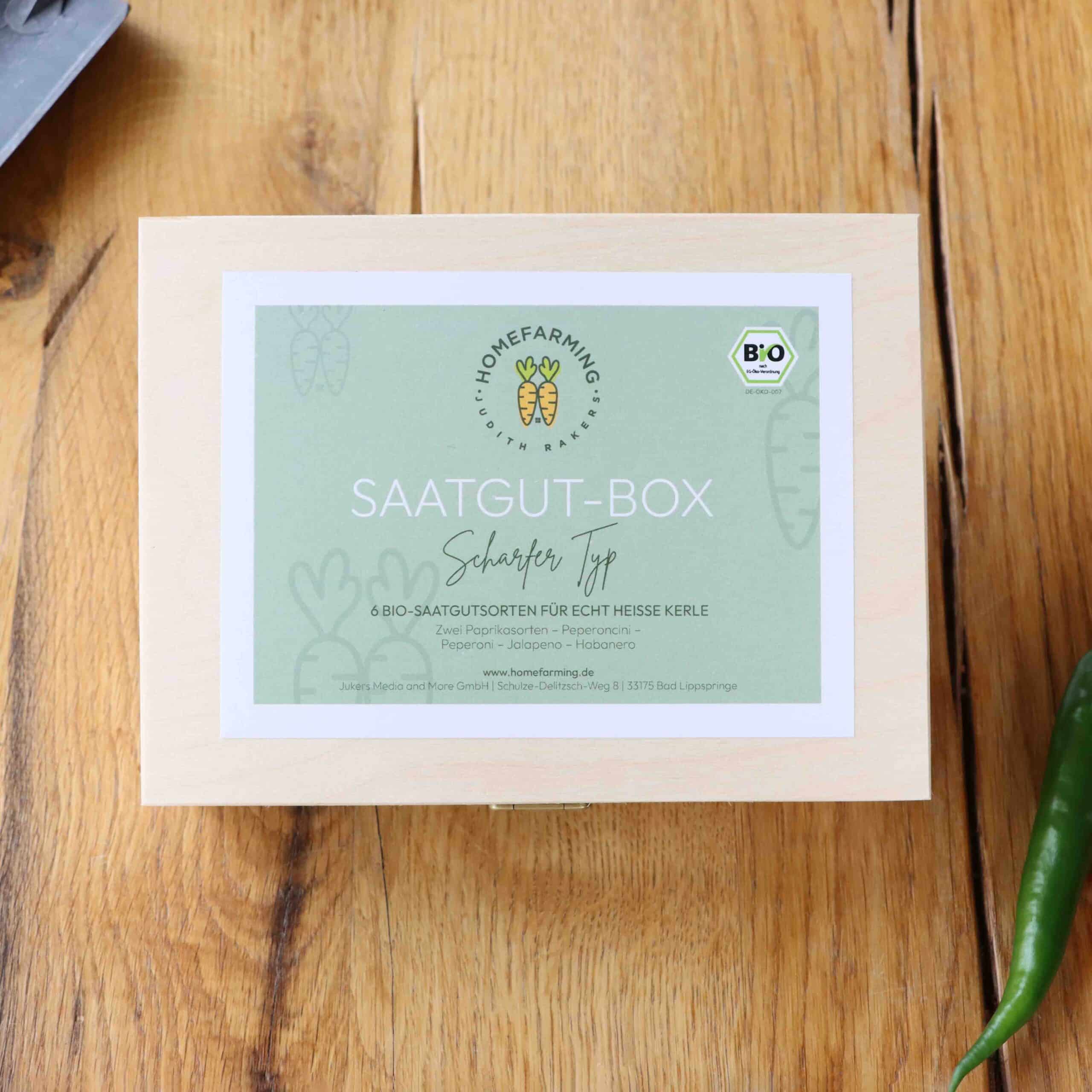 Die Bio-Saatgutbox „Scharfer Typ“ ist HOT! Und eignet sich für alle, die gern scharf essen. Denn mit diesem Bio-Saatgut kannst du dir unterschiedliche Paprika- und Chillisorten ins Beet holen und jeden Tag neu entscheiden, wie scharf es denn nun sein darf. Eine tolle Geschenkidee auch für Väter, Ehemänner, Söhne und all die harten Kerle da draußen. Und natürlich auch für alle Chilli-Chikas, die es richtig spicy mögen.