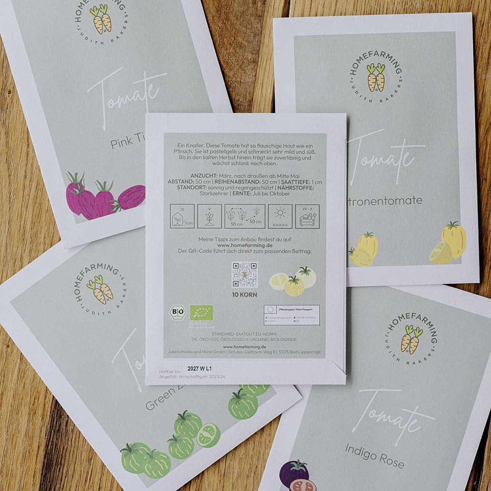 Auf jeder Saatguttüte findest du eine genaue Anleitung zur Aussaat, Pflege und Ernte. Außerdem führen dich QR-Codes auf den Saatguttüten zu ausführlichen Anleitungen im kostenlosen Magazin Homefarming.de. Dort warten viele weitere Tipps und sogar Rezepte zur Zubereitung auf dich.