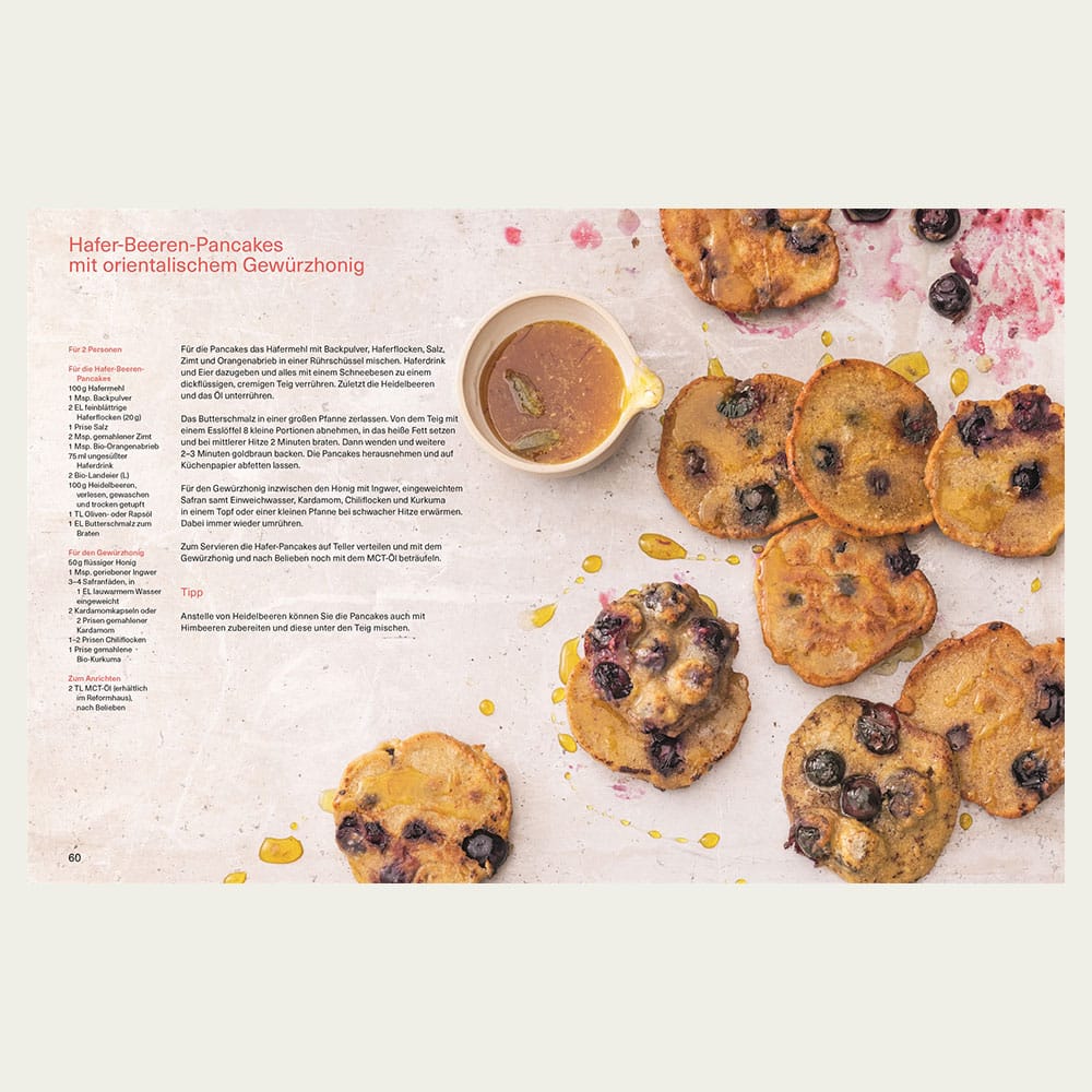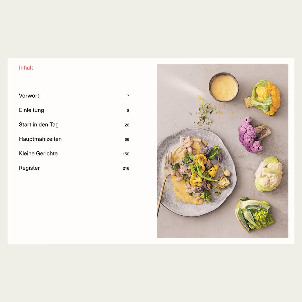 Die über 70 gesunden und leckeren Genuss-Rezepte überführen dieses Wissen dann in unseren Alltag: Der perfekte Start in den Tag gelingt zum Beispiel mit einem Birnenporridge mit Hanfsamen. Gefüllte Aprikosen mit Ziegenkäse zum Mittag oder Rinderhüftsteak mit Knoblauch am Abend lässt den Genuss im Alltag nicht zu kurz kommen. Begleitet wird jedes Rezept außerdem von interessanten Informationen, die über die jeweiligen Nährstoffe und ihre Wirkungsweisen von Zutaten im Körper aufklären. Genuss und gesunde Ernährung passen daher wunderbar zusammen: mit den neuen Rezepten aus Alexander Herrmanns Küche.