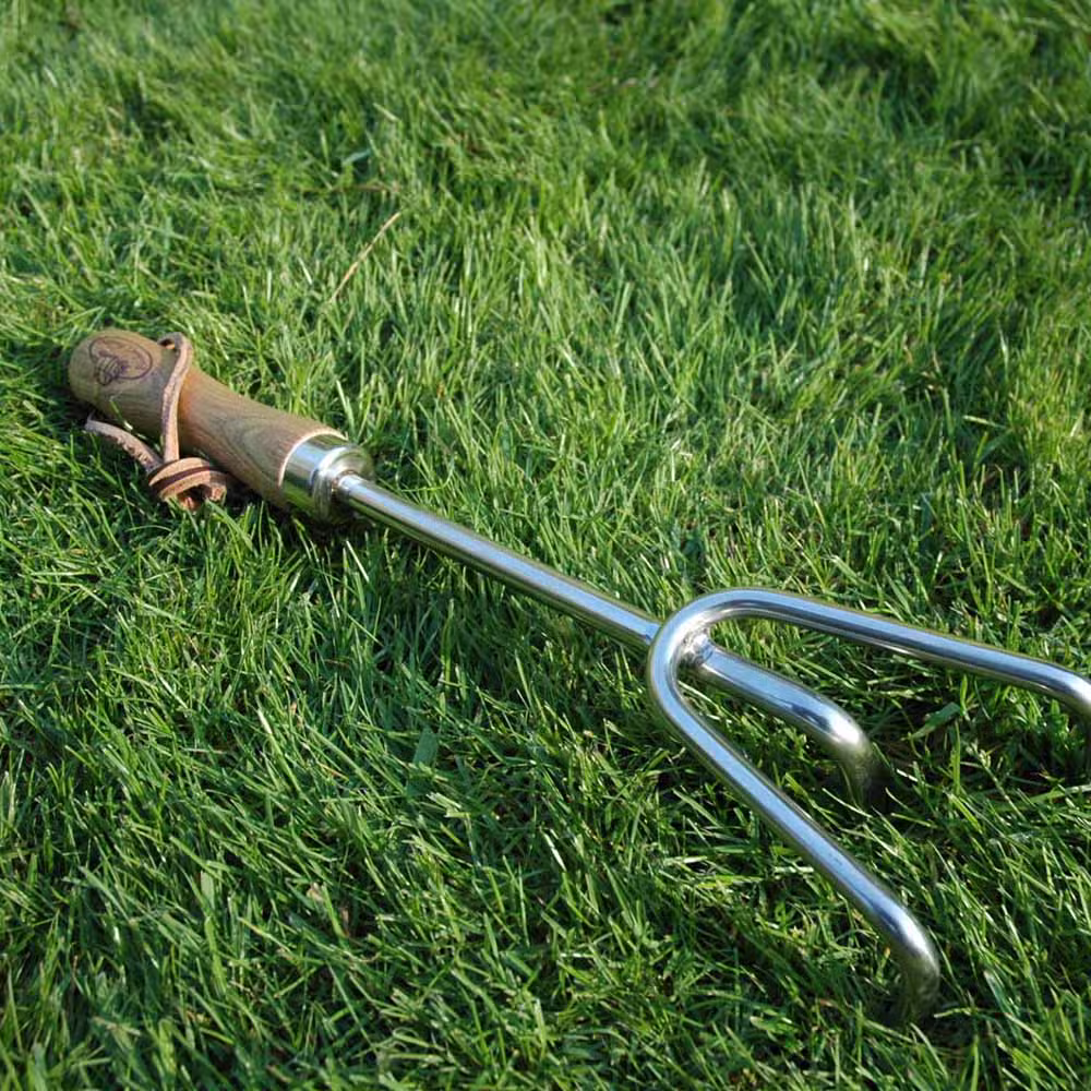 Die praktische Leder-Aufhängeschlaufe sorgt dafür, dass du die Harke stilvoll und jederzeit griffbereit aufbewahren kannst.
