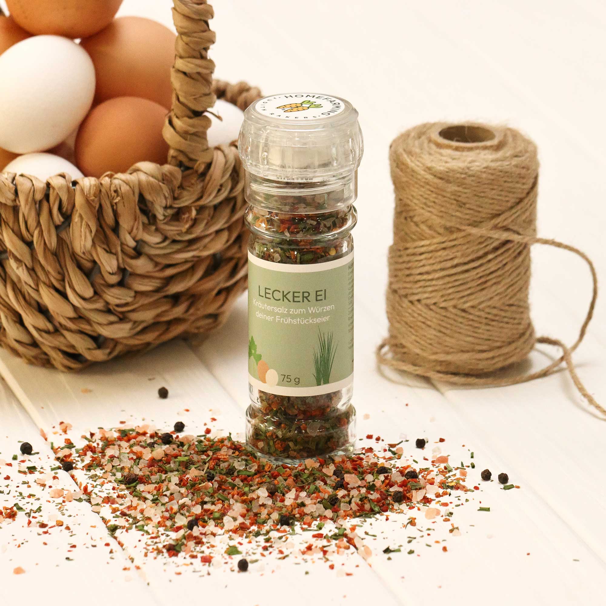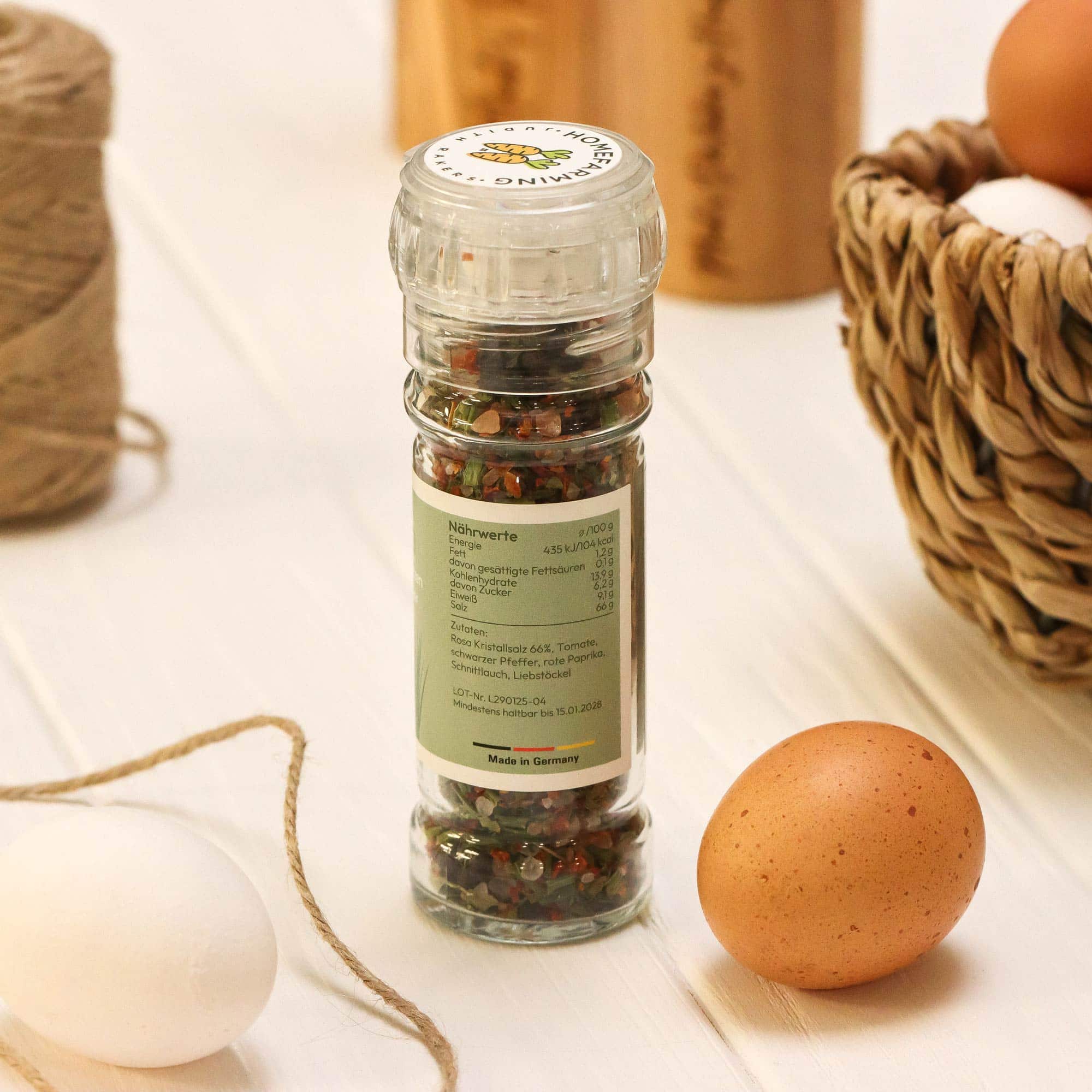 Ob gekochtes Ei, Spiegelei, Rührei oder Omelette – mit der Mischung aus getrockneten Gartenkräutern und Salz wird jedes Ei zum Genuss.