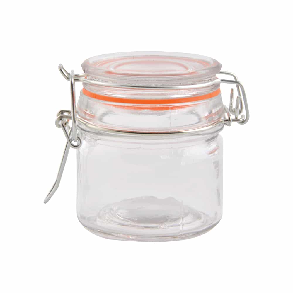 Diese kompakten Gläser mit 90 ml Fassungsvermögen und Maßen von 8,9 x 6,5 x 7,2 cm sind nicht nur praktisch, sondern auch stilvoll. Der Bügelverschluss mit dem orangefarbenen Gummiring sorgt für ein luftdichtes Verschließen, sodass deine Kreationen sicher aufbewahrt sind. Die Gläser sind wiederverwendbar und damit eine hervorragende Lösung für deine Vorratskammer. Zwar nicht spülmaschinengeeignet, lassen sich die Gläser dennoch einfach reinigen und sind sofort bereit für deine nächste Kreation.