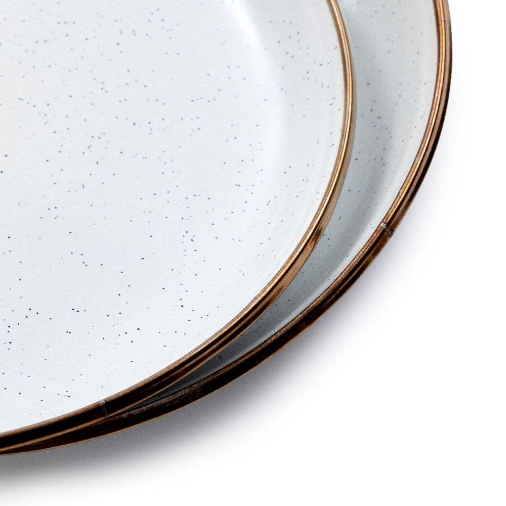 Mit dem 2er-Set Frühstücksteller aus Emaille in Egg-Shell von Barebones startest du stilvoll in den Tag – ob im Freien oder zu Hause! Diese kleinen Teller sind Teil der Outdoorgeschirr-Kollektion und vereinen Robustheit mit einem eleganten Design. Der handgearbeitete Kupferrand mit bronzeähnlicher Patina verleiht jedem Stück seinen einzigartigen Charakter und macht deine Tafel zu etwas Besonderem.