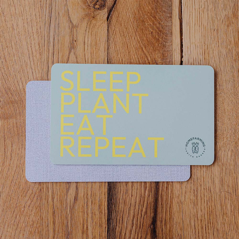 Dein neues Frühstücksbrettchen mit Homefarming-Mantra: Sleep-Plant-Eat-Repeat. Denn diese Kombi macht glücklich!