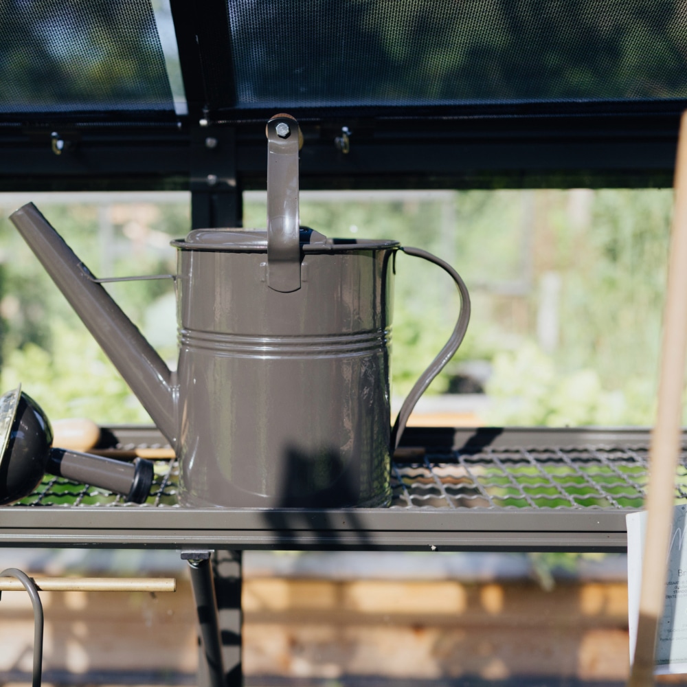 Das plastikfreie Gitterbord aus pulverbeschichtetem Aluminium mit stabilem Gitter bringt noch mehr Platz und Ordnung in dein Gewächshaus. MADE IN GERMANY.