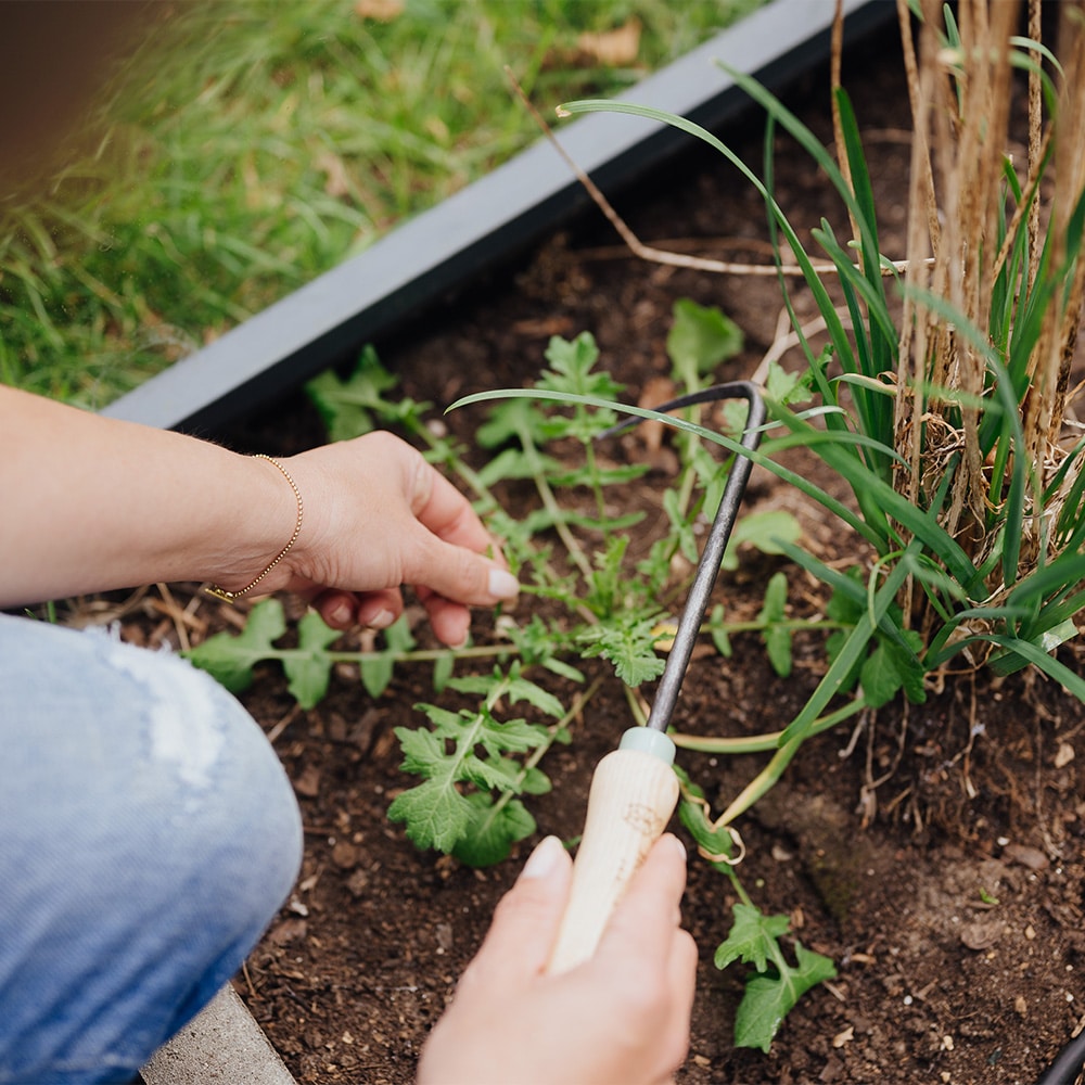 Der Homefarming-Unkrautjäter eignet sich außerdem, um den Boden in kleineren Gefäßen aufzulockern und Moos und Gras aus Pflaster-Fugen zu kratzen. Ein Alleskönner, den du oft einsetzen wirst.