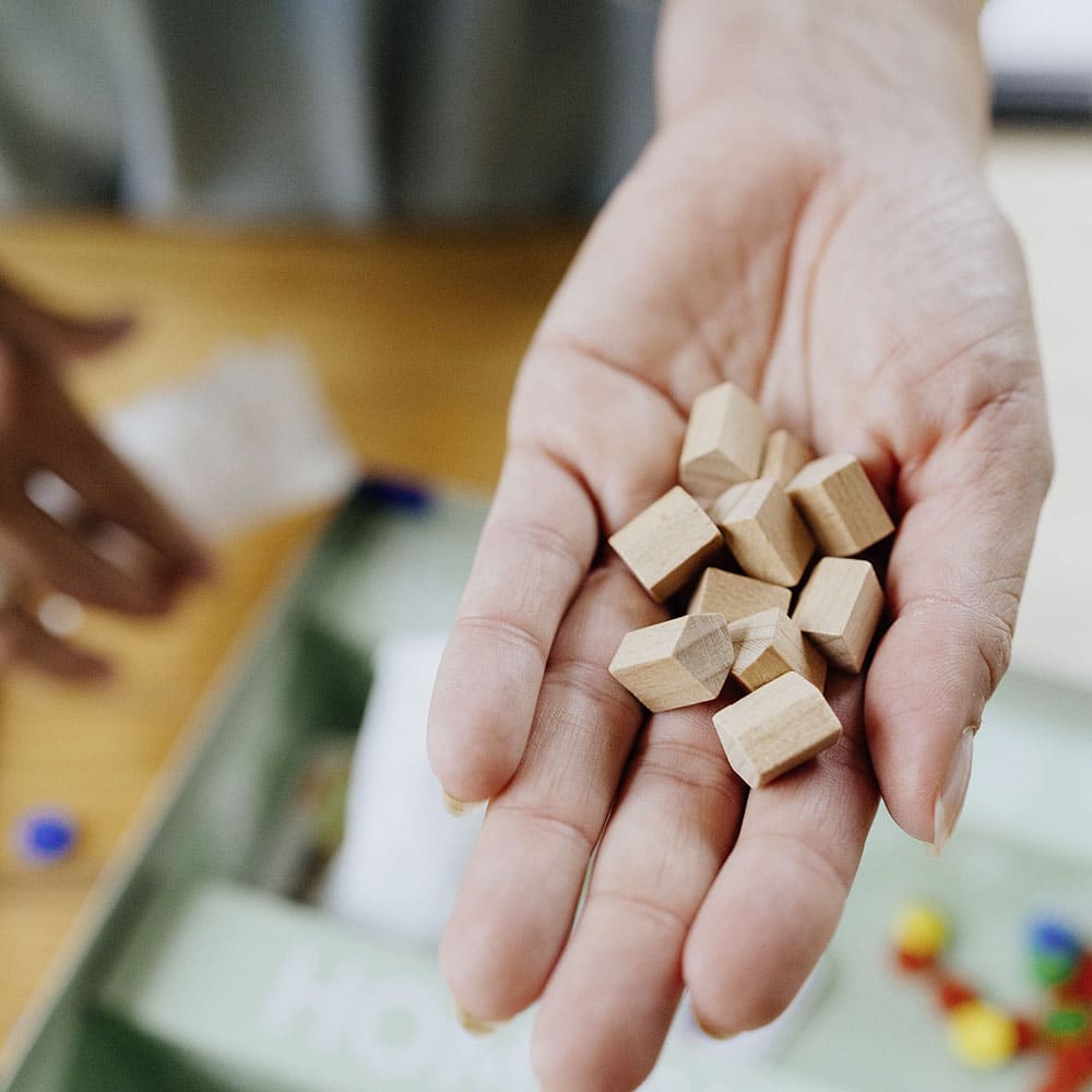 Judith war es sehr wichtig, dass das Spiel ohne Plastikteile produziert wird. So sind die Spielsteine und Mini-Gewächshauser aus Holz gefertigt, auch auf Plastikbeutel wurde verzichtet.
