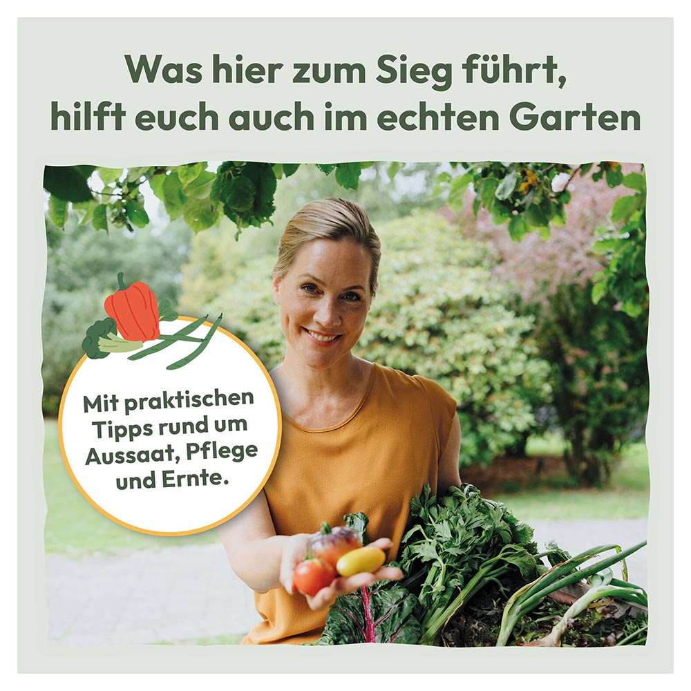 Während des gemeinsamen Spielens lernt die ganze Familie, wann welches Gemüse eingesät werden kann, wann geerntet wird und was zu tun ist bei Dürre und Schädlingsplagen. Selbst komplizierte Themen wie Fruchtfolge und Fruchtwechsel vermitteln sich hier ganz spielerisch.