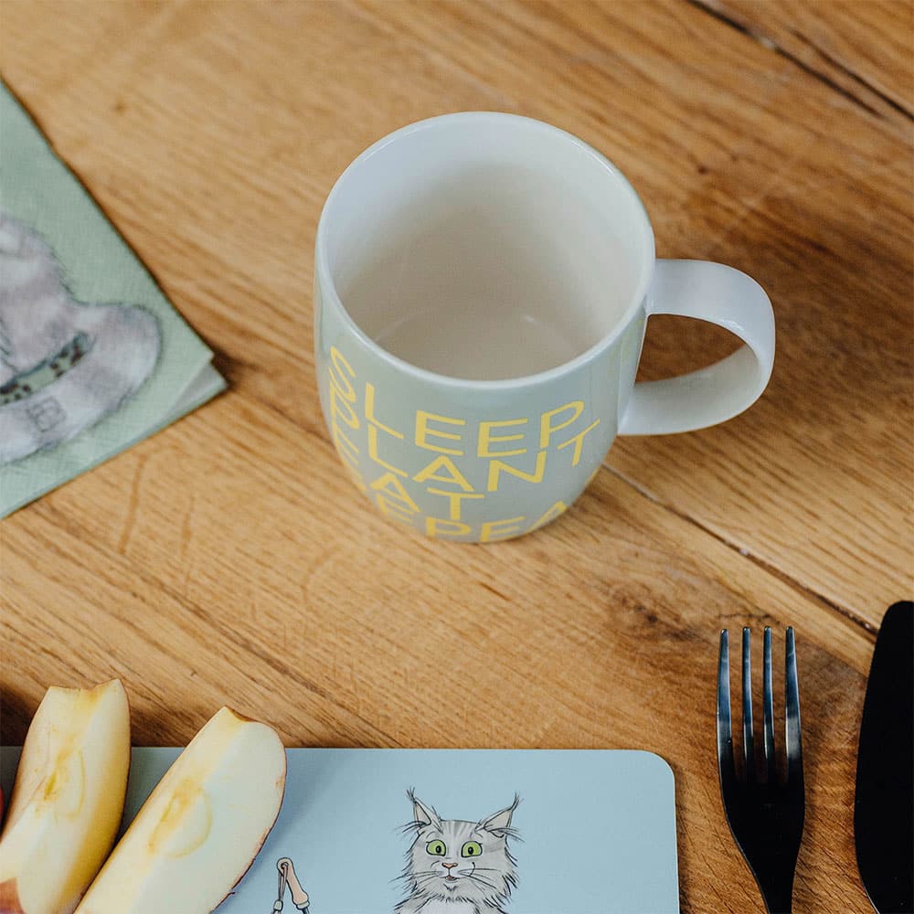 Unser Lieblingsbecher „Sleep Plant Eat Repeat“ wurde von unserem traditionsreichen Porzellanhersteller in Thüringen von Hand dekoriert. Das hochwertige Porzellan ist spülmaschinengeeignet und mikrowellenfest.