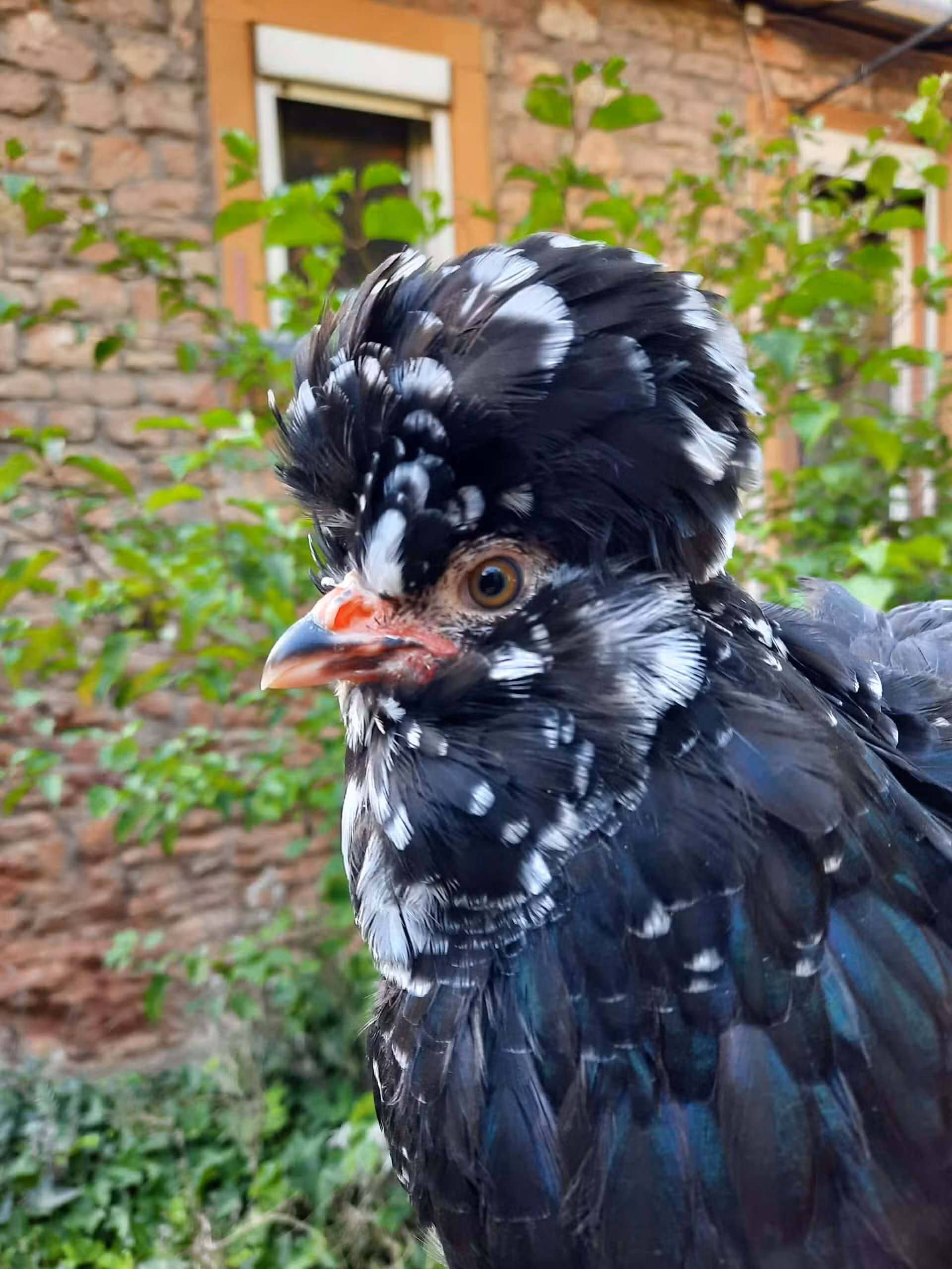 Houdan sind in vielfacher Hinsicht einzigartig. Das betrifft nicht nur ihre Optik mit der Haube, dem Bart, dem in dieser Form nur bei ihnen vorkommenden Schmetterlingkamm und der zusätzlichen fünften Zehe, sondern auch ihr ganz spezielles Wesen. Denn sie sind nicht nur ruhig, zutraulich und gelassen, sondern auch außerordentlich starke Charaktere. Und das betrifft ganz besonders die Hennen, die ihren eigenen, ganz speziellen Willen haben und den auch konsequent durchsetzen. So akzeptieren sie bei weitem nicht jeden Hahn, den man ihnen zwecks „Produktion“ der nächsten Generationen zugesellt und oft genug konnten wir schon erleben, dass sich erst mehrere Hähne „vorstellen“ durften, bis endlich alle Damen zufrieden waren.