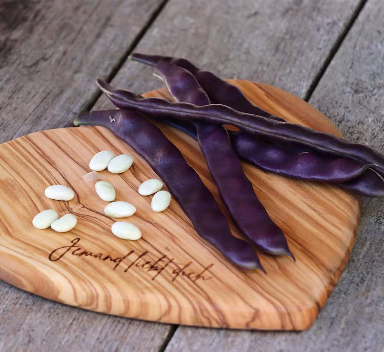 Eine weitere Gluckenbohne ist „Purple Teepee“, deren lilane Bohnen beim Kochen grün werden.